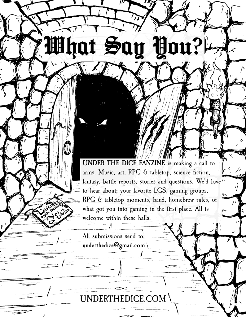 A busy month, and now we rest. I don’t think I ever really take a break. I currently have a lot still on the burner but I’ll be slowing down to catch my breath a little. Hive Scum is still in full effect, and next episode will cover the events in more detail. Issue 6 of Under the Dice is open for submissions. If you’d like to contribute, or have questions on how or what to submit, just shoot me an email.