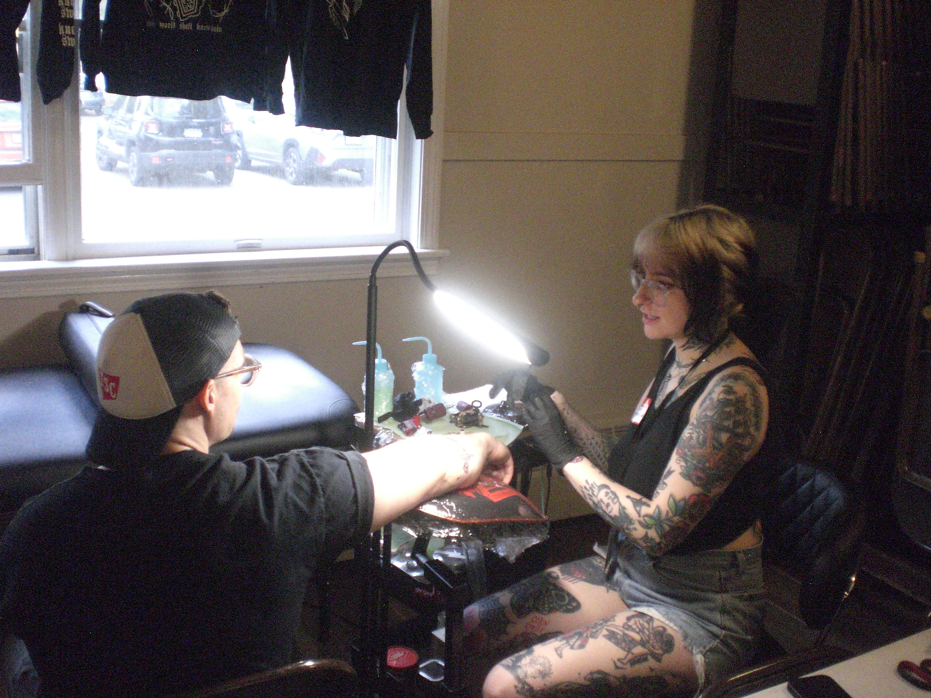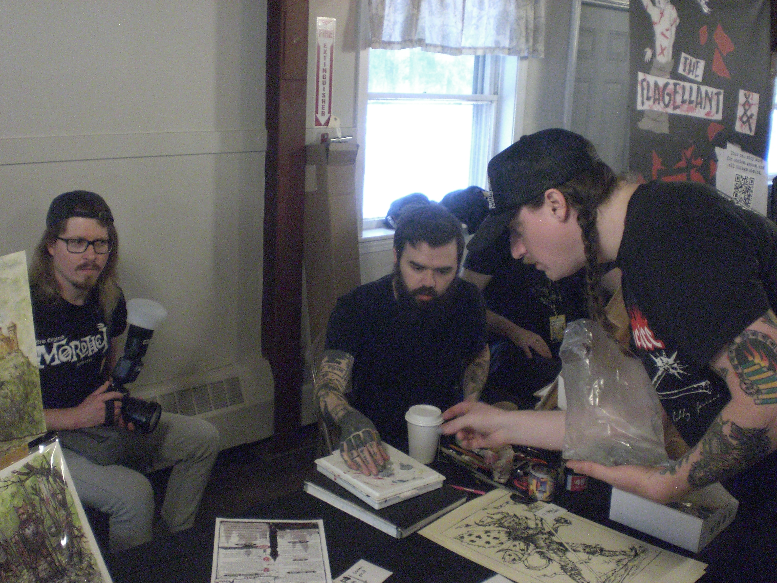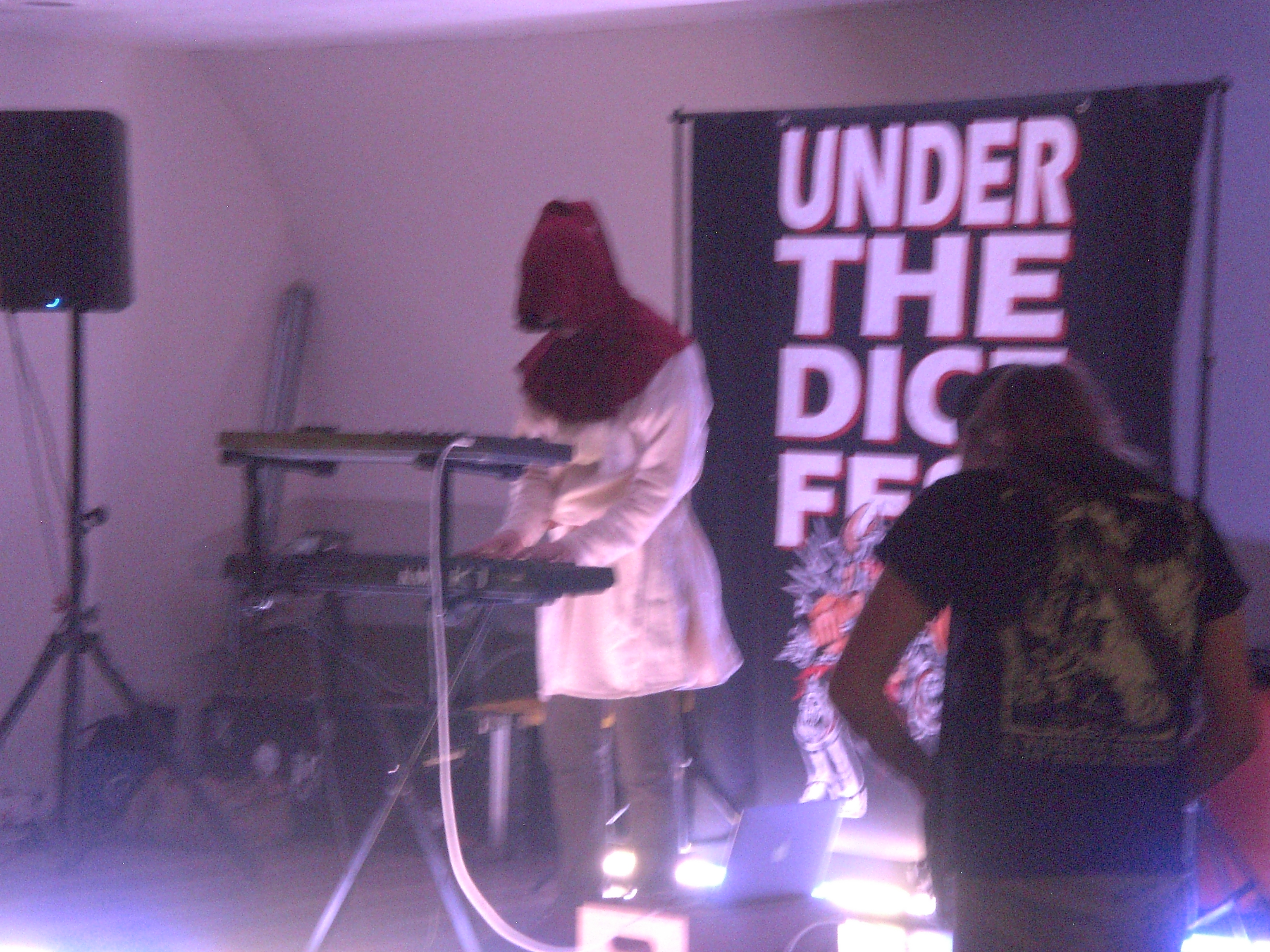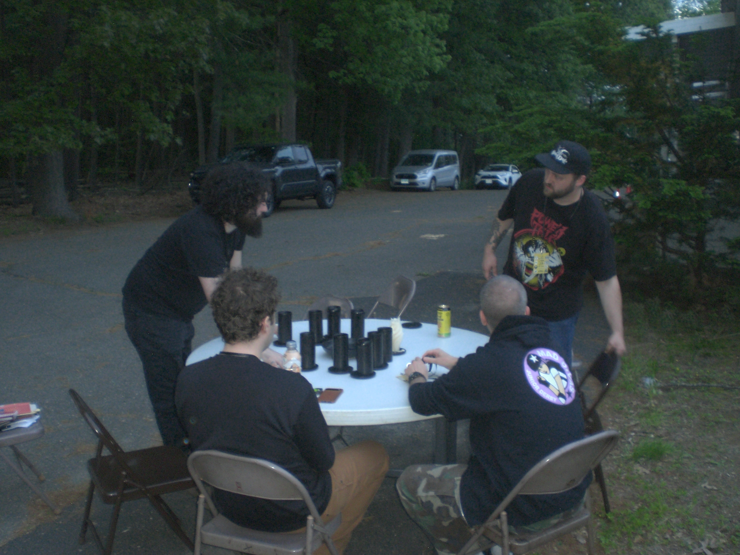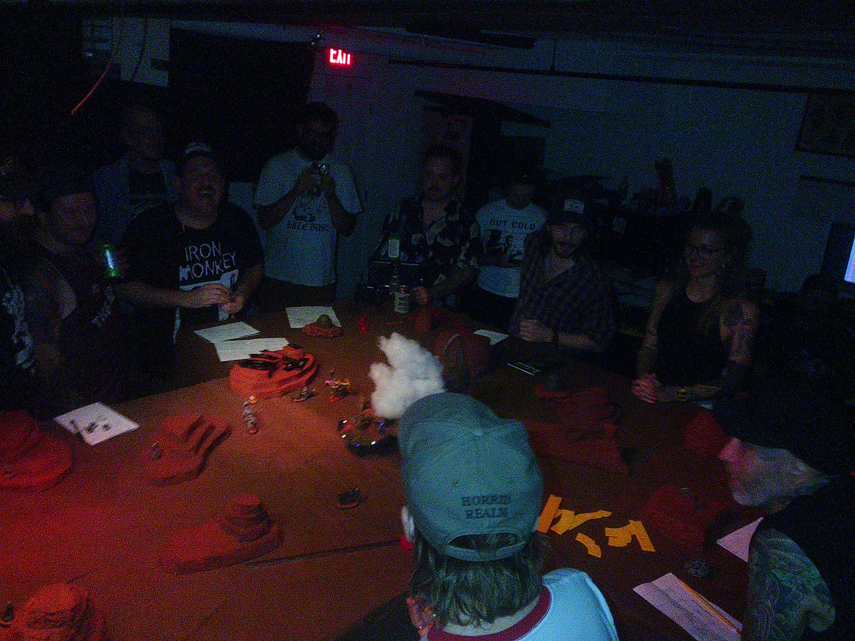 Above: You can see a collection of photos from Under the Dice Fest ’25. Many people captured the event better than me, this is just what I caught on my camera. The packed room for NEMO. A game of 10 Candles being ran outside by Shane the Blind Man. A large group taking part in the Flames of Orion event. The HEMA guys putting on a demonstration of live combat. A large spread of boards from the Warmaster event. Friends from far away face timing in for the musical performances. The Rusted Demon judges standing with the trophies. Terry announcing the winner (Tanner!) of the Berserker Flail, the grand champion of the Rusted Demon.