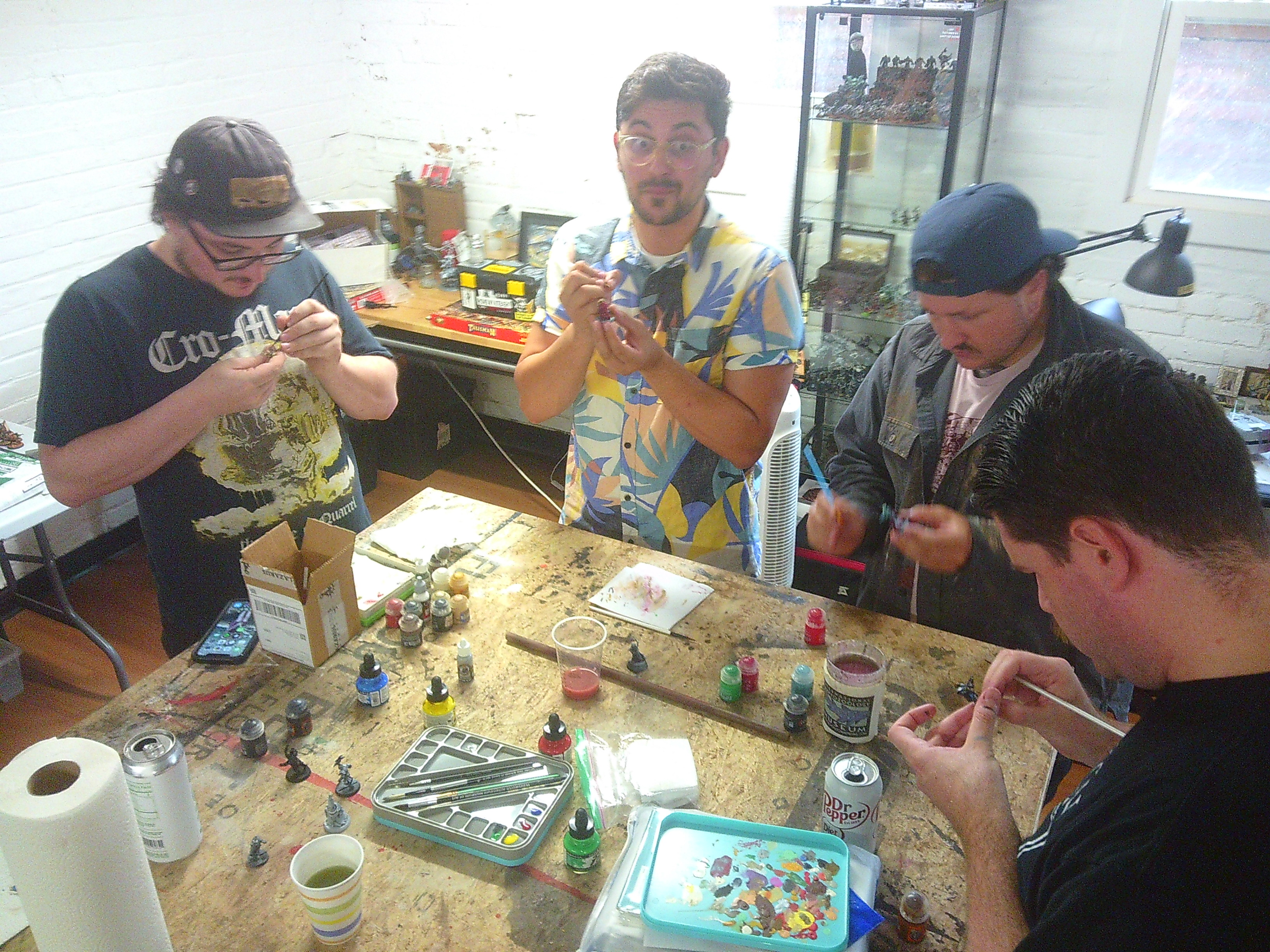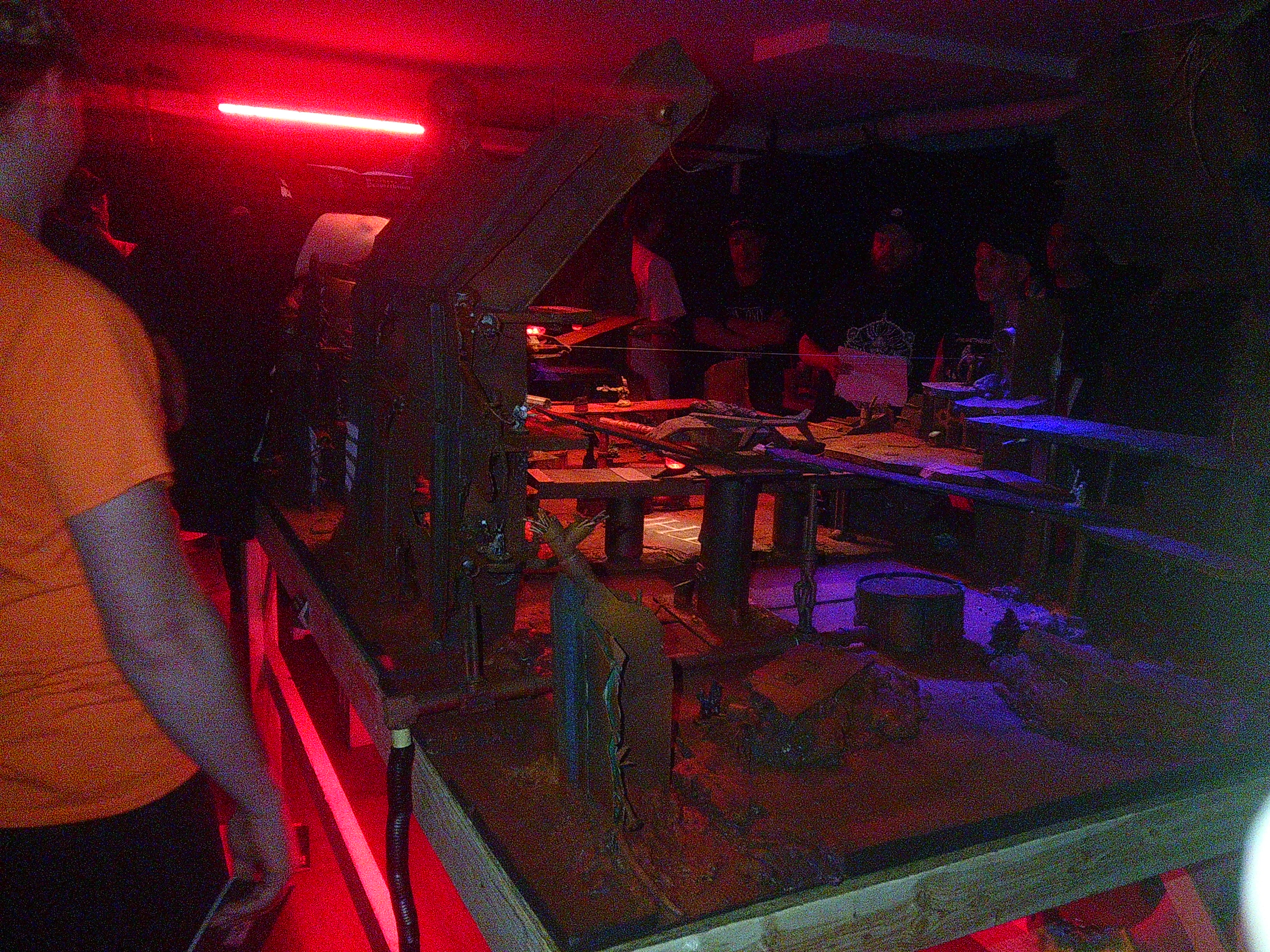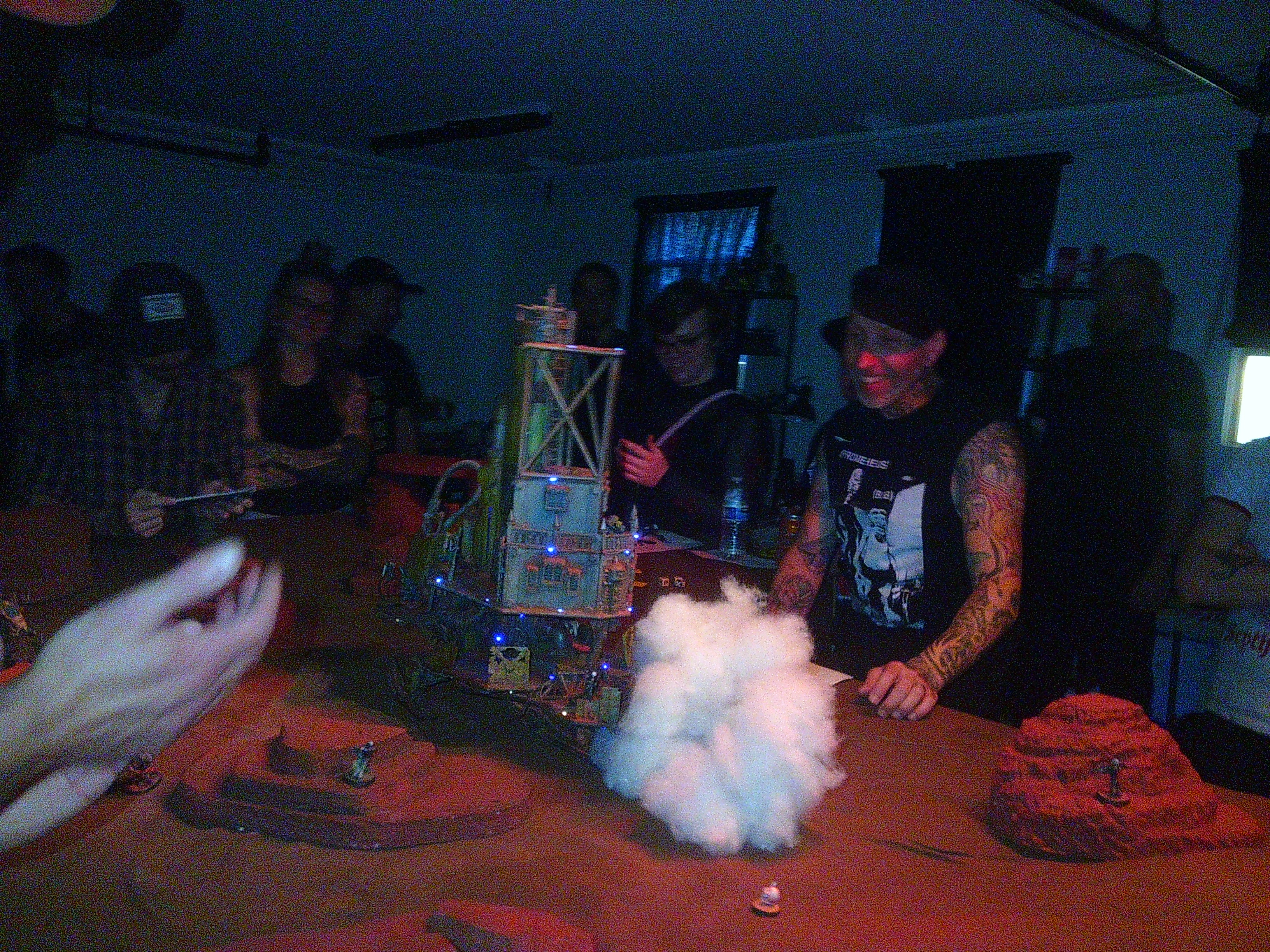 Above: A collection of photos from the Brothers of Promethium event from August ’24. You can spot the mobile promethium refinery created by Blerz. It was used as a board for the first round of games, as well as the big enemy during the FASTLANDS game in round two. And the chaos that was a 20~ person game of what was essentially inquisitor happening on the space hulk board. Theres some photos from the 4×8′ spacehulk board that I built within about a month and a half’s time – with some help from a few friends (specifically Tyler and Blerz!). You can also see Sams little painting class, and photos from a massive game of OPR Regiments between Brad, Adam & Ian (Undead & Orcs) vs Renzo & myself (Empire).