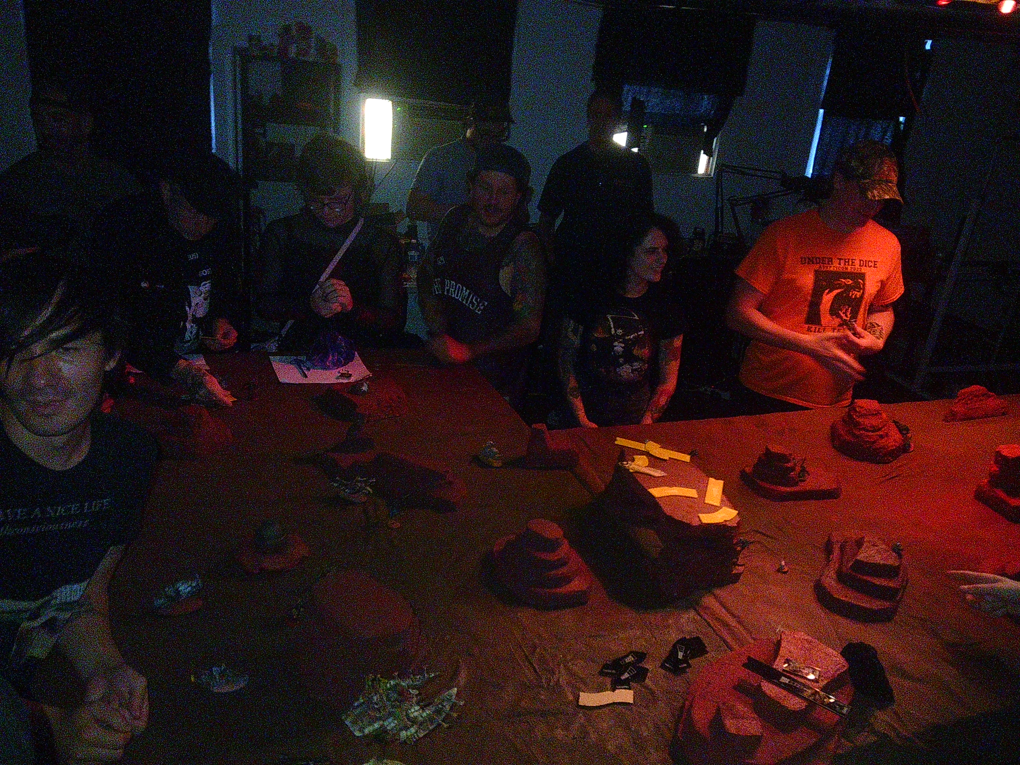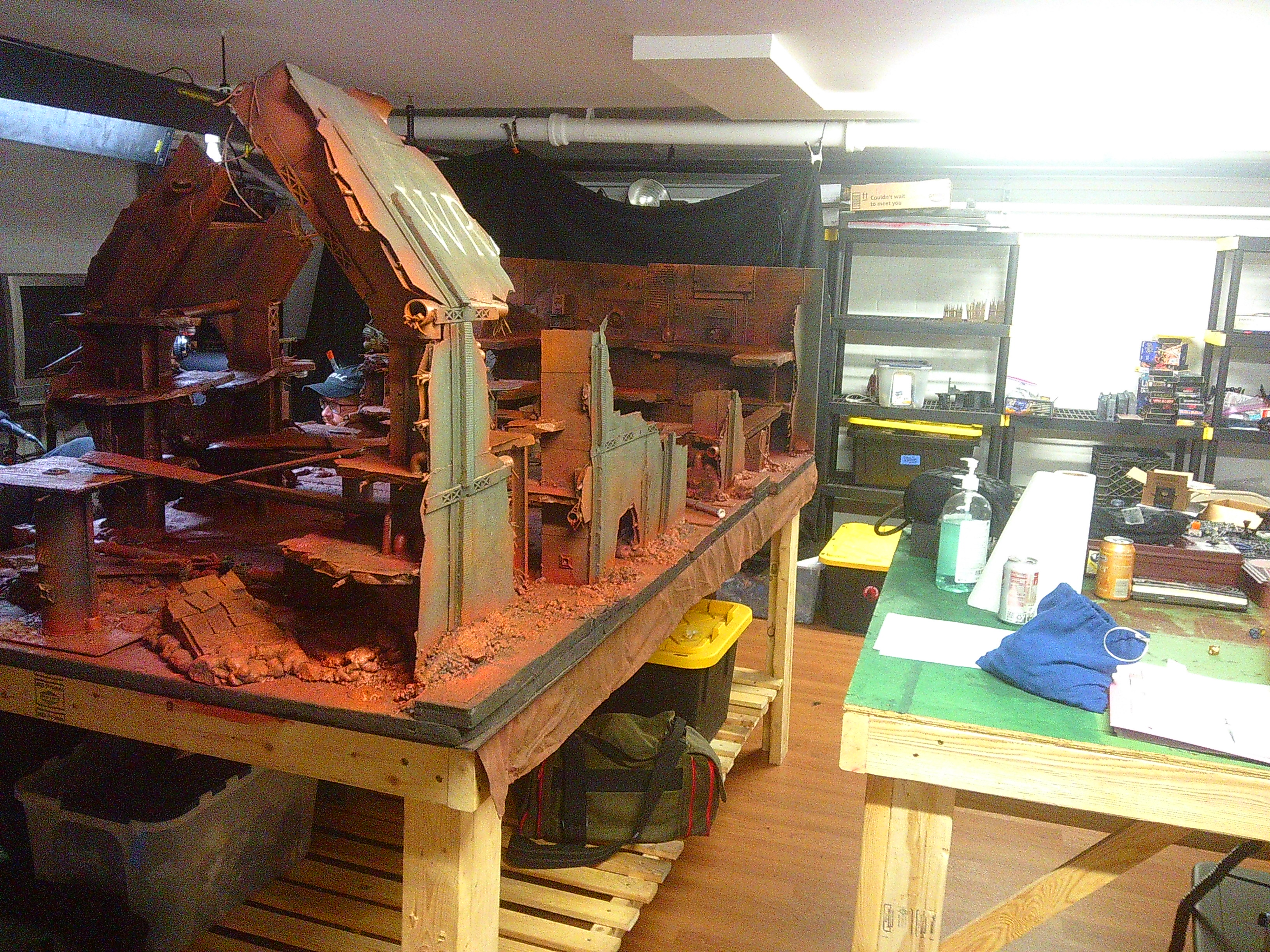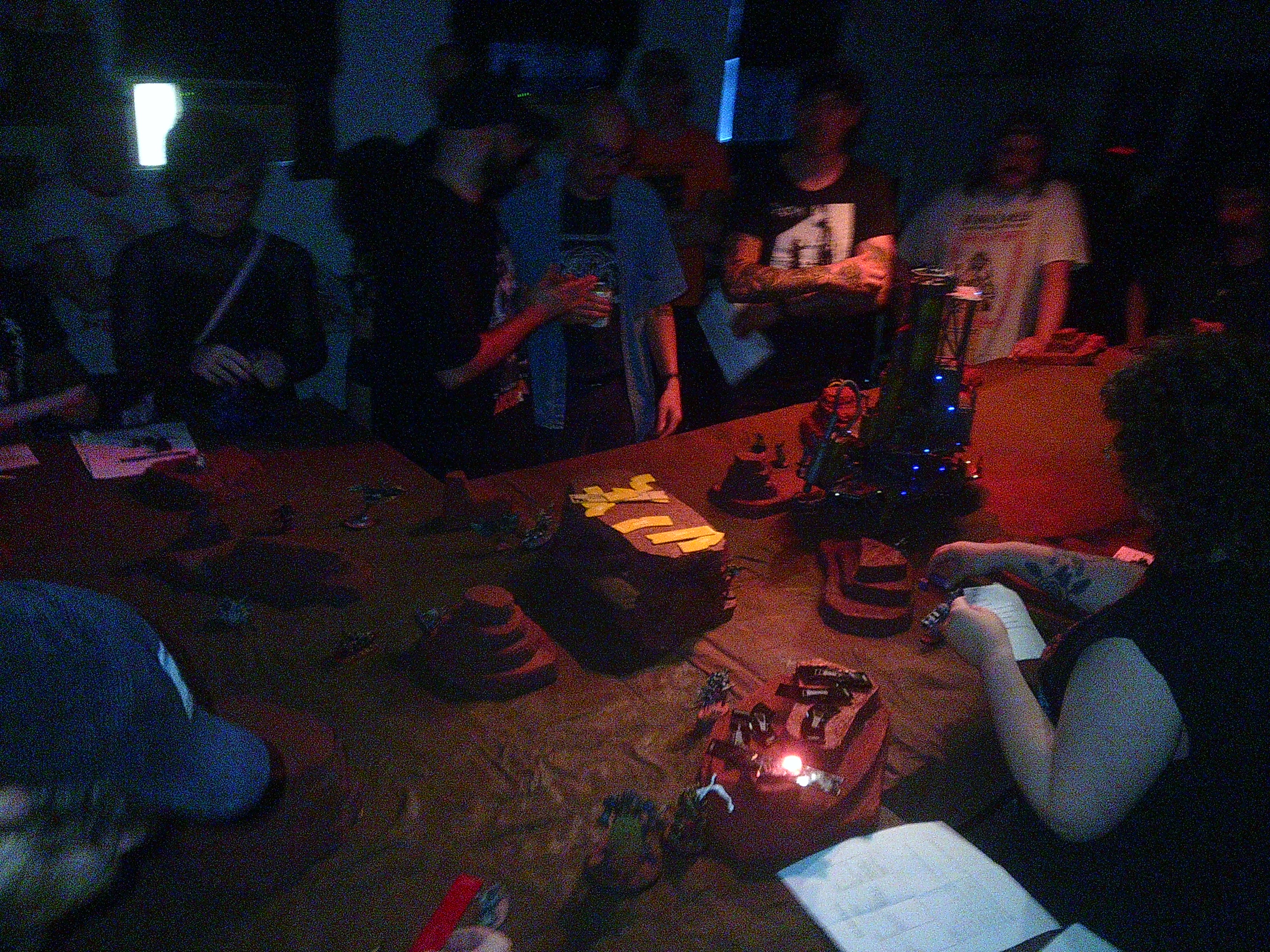Above: A collection of photos from the Brothers of Promethium event from August ’24. You can spot the mobile promethium refinery created by Blerz. It was used as a board for the first round of games, as well as the big enemy during the FASTLANDS game in round two. And the chaos that was a 20~ person game of what was essentially inquisitor happening on the space hulk board. Theres some photos from the 4×8′ spacehulk board that I built within about a month and a half’s time – with some help from a few friends (specifically Tyler and Blerz!). You can also see Sams little painting class, and photos from a massive game of OPR Regiments between Brad, Adam & Ian (Undead & Orcs) vs Renzo & myself (Empire).